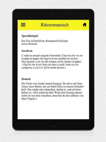 Die App gibt unter anderem Einblicke über die Geschichte, Verbreiterung, Verankerung Rückzug und Idiome der Rätoromanischen Sprache.