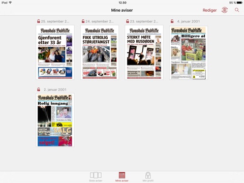 - Mulighet for å bla gjennom sidene, zoome inn på bilder og artikler, liste opp alle artiklene