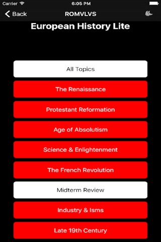 This is a FREE demo version of Romulus European History with a limited number of questions. Romulus European History is a quiz-based application of iOS devices designed to help students review for exams in European History, such as AP European History and IB History of Europe and the Islamic World, as well as for unit tests and mid-term exams. Our goal in designing this program is to allow students to reinforce their content knowledge in a fun, quick and accessible way.
