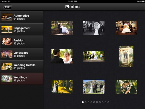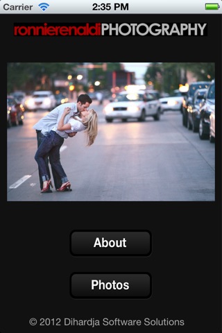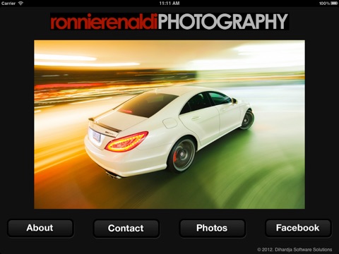 This App contains Ronnie Renaldis portfolio images. There are a total of 200 images in these 6 collections: Automotive, Engagements, Weddings, Wedding Details, Fashion and Landscapes.