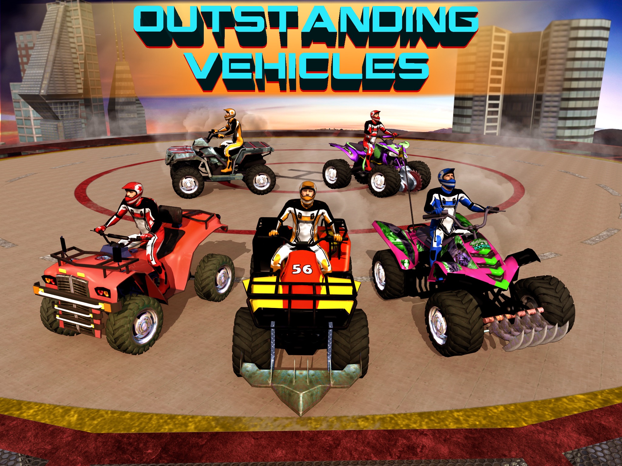 Indulge in the most exotic of locations. It’s time for mayhem on the heights! Challenge your driving skills in Rooftop Demolition Derby: an action packed moto carnage game, where you drive your ATV on rooftop helipads, mountain tops and volcanos, and survive the thrilling moto battle to be the winner.
