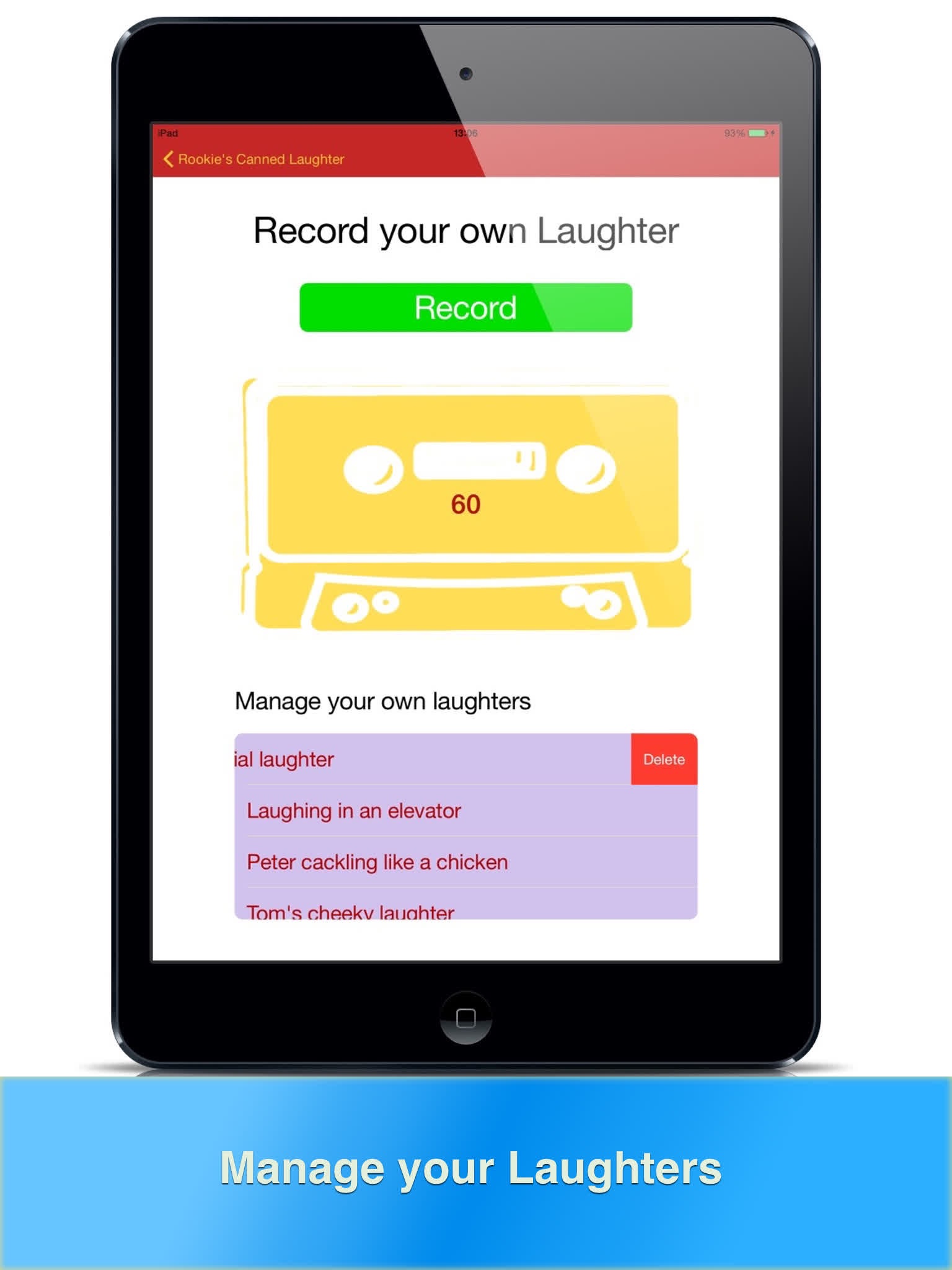 You want more laughters than included by this app? No problem: record your own laughter (or voice message or funny sounds) with a maximum duration of about 60 seconds - they will appear in the picker view (kind of select box) of the main screen also.