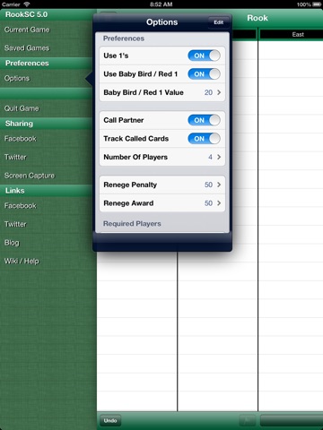 I am an avid rook player and got this app when it first came out in the hopes that I could use it. It wasnt till this latest up date that I would consider it. I like how the new version is laid out. Getting to call partners is huge. I would give this app 5 stars if you would add the option for 2,3, and 5 players. If you dont know how thats played 2 players is just man on man. The play is different but the scoring is the same. In 3 man, there is no partner. Its every man for him self each person collects their own points, however its the combined score of the opposing players that determines if the declared makes his/her bid. In 5 man, the person who takes bid calls one partner, and it becomes 2 against 3. I know a number of people who play this game and would love this app if you added those features. Ill keep watching for the new updates. When you get there Ill start pushing them to get it.