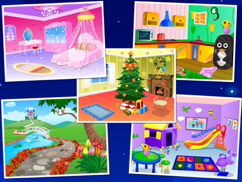 A lovely room decoration game for little girls where they can apply their imagination and creativity. With 8 fantastic themes: Preschool room, Kitchen, Cupcake house, Princess bedroom, kids bedroom, Christmas room, kids bathroom and palace garden, this colorful app promises loads of free fun and cheer - perfect for girls in age group 4-9 years.