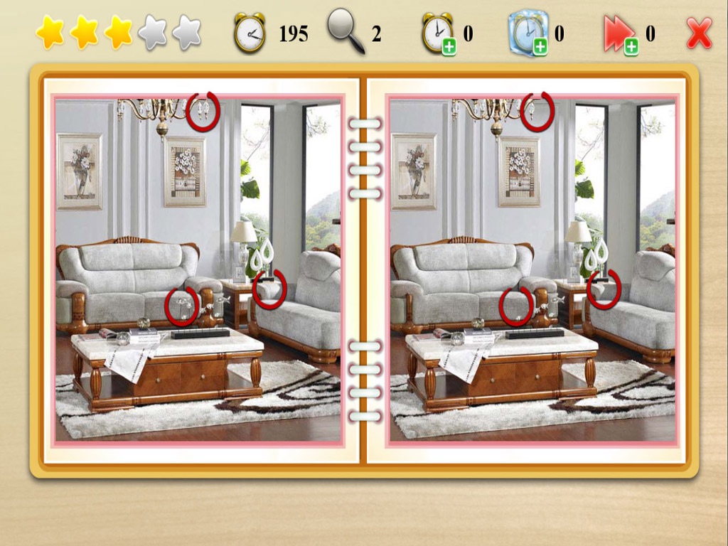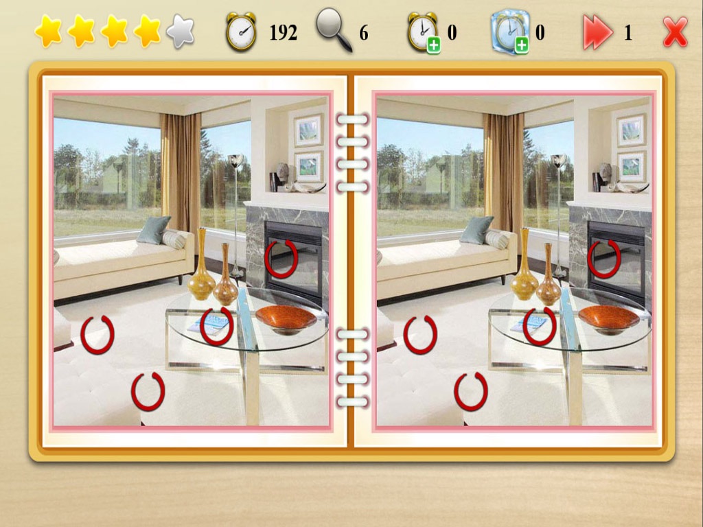 Find the Differences is a simple puzzle game which shows you two images. You have to find five differences between these images and spot them! over 70 stages, Improve attention skills and exercise brain while playing Spot the Differences Rooms. The images are about the beautiful rooms.