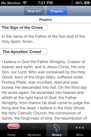 The best app (non-audible) for praying the rosary. It automatically opens up the mystery you need upon entering the app. Also, theres an interactive rosary that helps to keep your place when you dont have access to an actual rosary. The rosary how-to is also a plus.