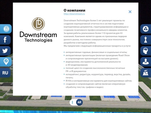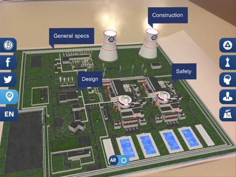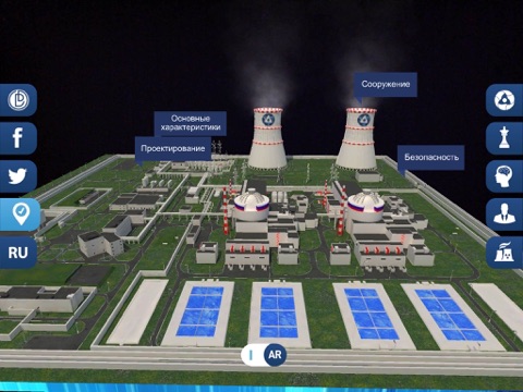 Exact model of RosAtom VVER-TOI nuclear power plant in augmented reality with additional information about the company.