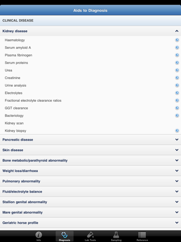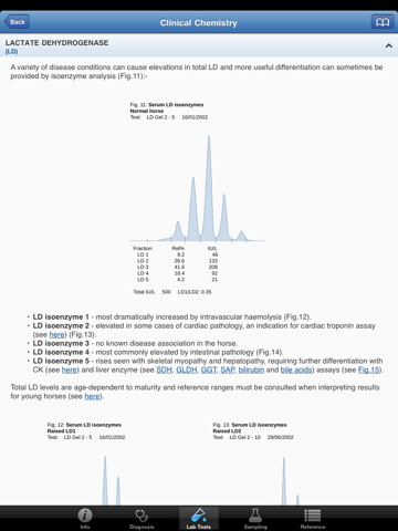 The App provides a wealth of useful advice including using clinical pathological aids to diagnosis in equine practice, sampling requirements, reference ranges, haematology, clinical chemistry, endocrinology, urinalysis, parasitology, microbiology, cytology, histology, necropsy examinations and biopsy sampling. There are tables of laboratory reference ranges for adult non-Thoroughbred horses, Thoroughbred neonatal and older foals, yearlings, 2-year-olds, 3-year-olds and adults at stud.