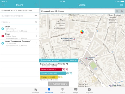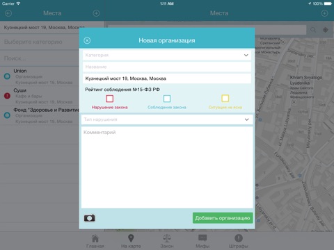 - отмечать и комментировать на карте места и организации, свободные от курения;