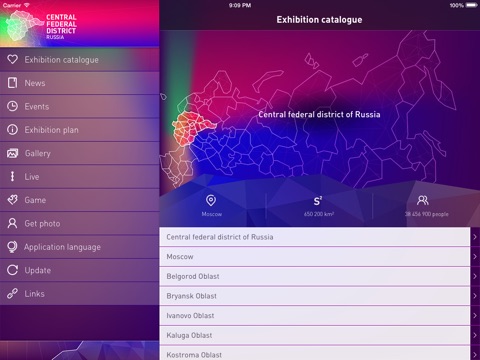 Install this mobile application of the exhibition of the Central Federal District of Russia.