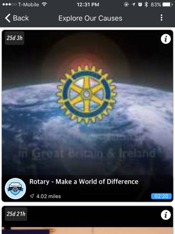 Users can post/view live broadcasts of Rotary events,