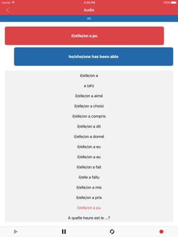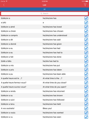 • List mode lets you browse through the entire database of words and phrases, study verb conjugations, search for words, or create your very own custom word list