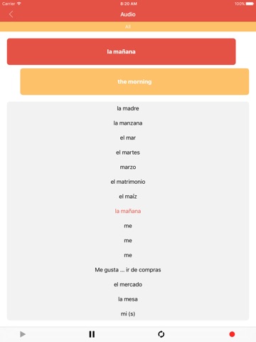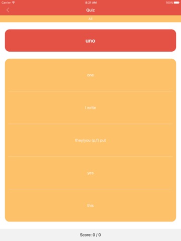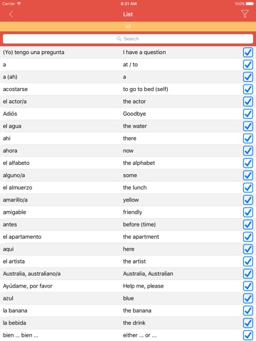 • List mode lets you browse through the entire database of words and phrases, study verb conjugations, search for words, or create your very own custom word list