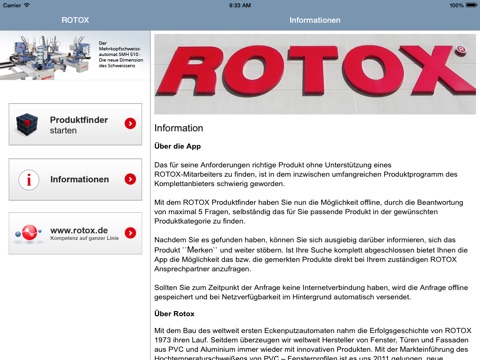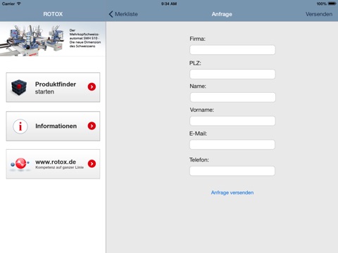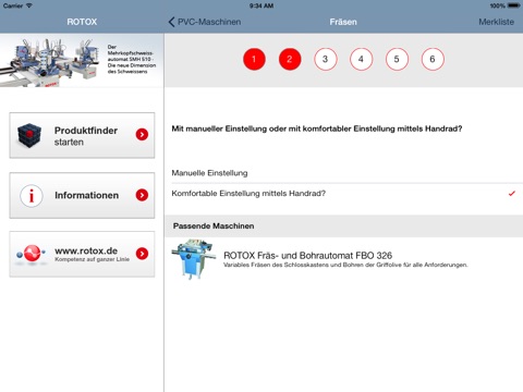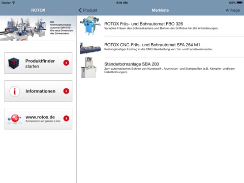 Nachdem Sie es gefunden haben, können Sie sich ausgiebig darüber informieren, sich das Produkt "Merken" und weiter stöbern. Ist Ihre Suche komplett abgeschlossen bietet Ihnen die App die Möglichkeit das bzw. die gemerkten Produkte direkt bei Ihrem zuständigen ROTOX Ansprechpartner anzufragen.