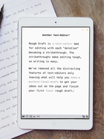 You dont need another "text editor." Thats why Rough Draft makes editing tough, so writing is easy.