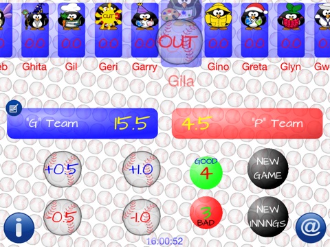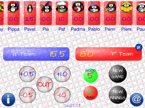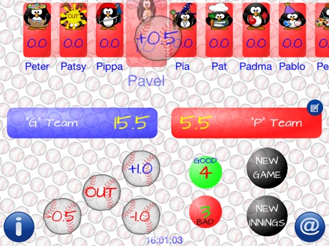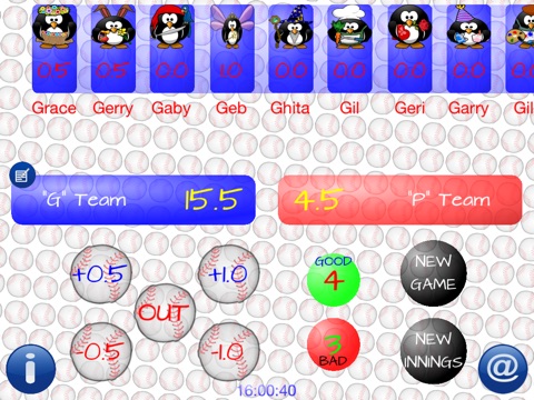 A simple drag and drop system allows the user to award Rounders and Half-Rounders to players, to record good and bad balls, and to mark when a player has been given out.