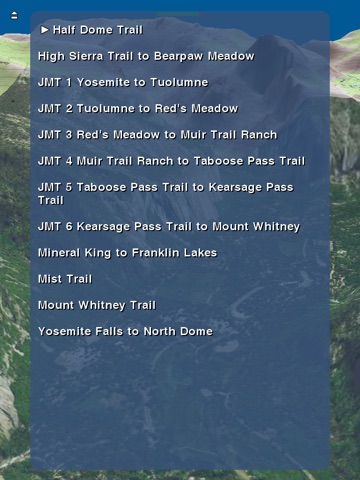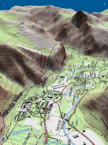 This is the free ad supported Lite version; the full version Route3D Yosemite to Whitney has more features. Both versions contain preloaded topo maps that operate without an internet connection.