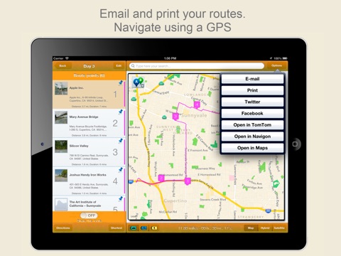 - Share itineraries and routes via e-mail!