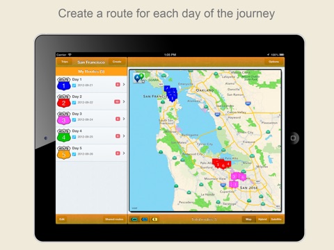 Routes. Planning your Journeys is designed for iPhone & iPad so you have only to pay once to get it for both devices. With the syncing support all your itineraries and routes will be shared on all your devices!