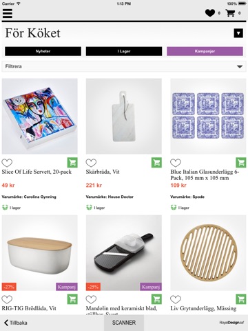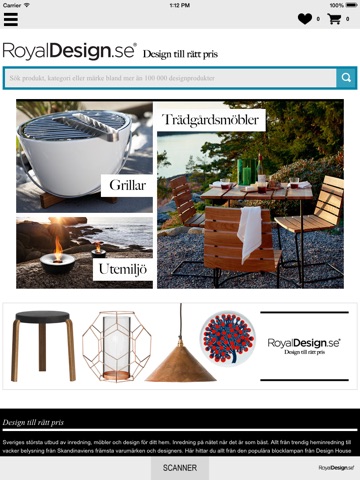 I Royal Design-appen kan du utforska Royal Designs stora utbud av designprodukter. Använd appen för att lägga till varor genom att scanna QR-koder från någon av Royal Designs digitala touchskärmar eller sök bland produkter direkt i appen.
