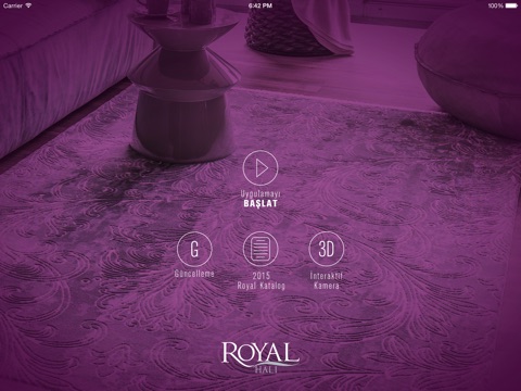 Royal Halı Arttırılmış Gerçeklik uygulaması sayesinde kendi evinize tüm Royal Halı modellerini interaktif olarak yerleştirebilir ve tüm desenleri kolay bir şekilde kendi evinizin konforunda deneyebilirsiniz.