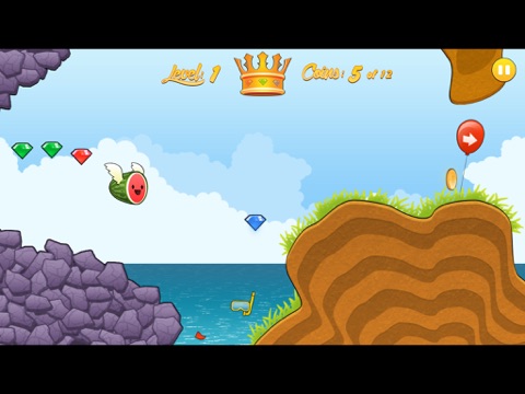 Join Roy, the flying watermelon, on his quest for fortune and fame! Avoid obstacles and grab as many coins as possible. Collect multiple gems of the same color to unlock sweet bonuses and cool crowns!