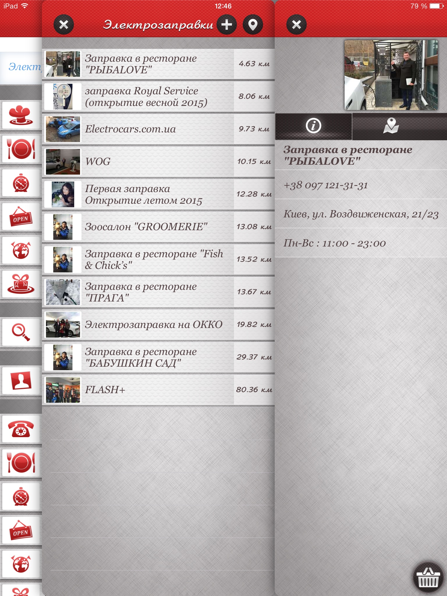 Также в разделе ( i ) указаны: название заправки, время работы, фото, описание и контактный телефон.