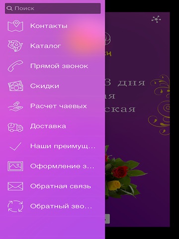 • Возможность заказать цветы с доставкой всегда «под рукой».