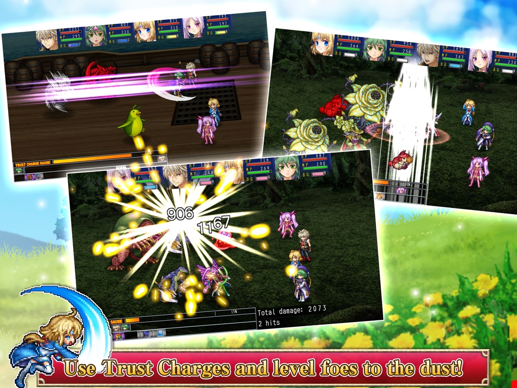 Fill the Trust Gauge or combine magic and skills to create powerful combos and then let loose on the enemy with a barrage of eye-popping attacks that are sure to paint the battlefield with some of the most visually impressive moves yet! Add an auto-battle function that includes various tactics into the mix and battles have never been such a breeze!