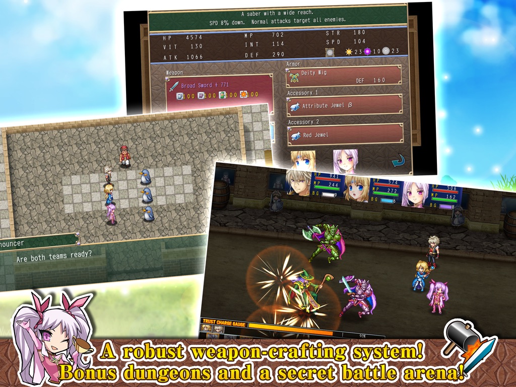 Weapon upgrades, a battle arena for the toughest of the tough, plenty of post-game content, and so on bring everything to the table players have come to expect from the Asdivine series and a whole lot more! Now it is time to suit up and set out on an adventure like never before!