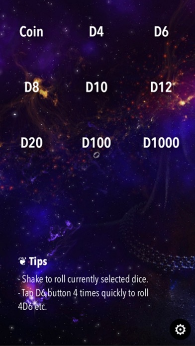 - Roll: D4, D6, D8, D10, D12, D20, D100 and D1000