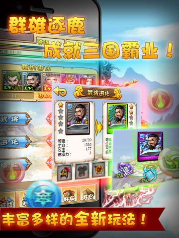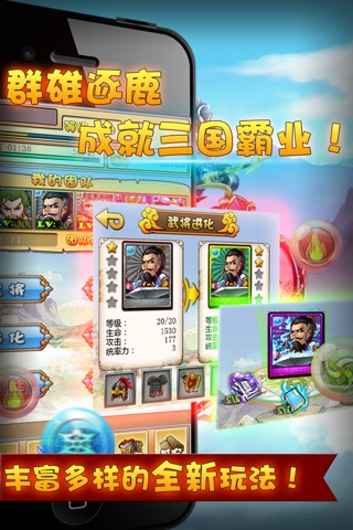 首创的游戏模式,重新定义消除类游戏玩法。给您完全耳目一新的感觉。经典的三国时代,重温经典人物,成为主公,带领谋臣武将征战四方,创造历史。