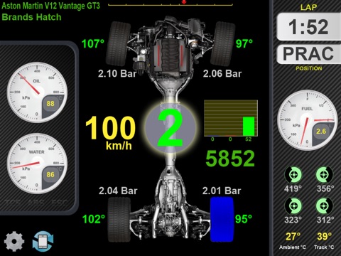 Want more? There is also a HUD and one of the most important things, a dedicated race page showing you critical fuel, tire (wear/temps), brake (temps), damage and lap timing, a must have for any racer.