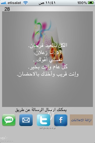 رسائل عيد الاضحى يحتوى على اكثر من ٢٩٠ رسالة تهنئة بالعيد و تتنوع هذه الرسائل ما بين الفكاهية والدينية و المعايدة.