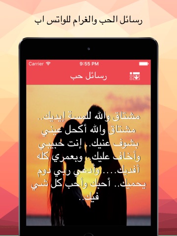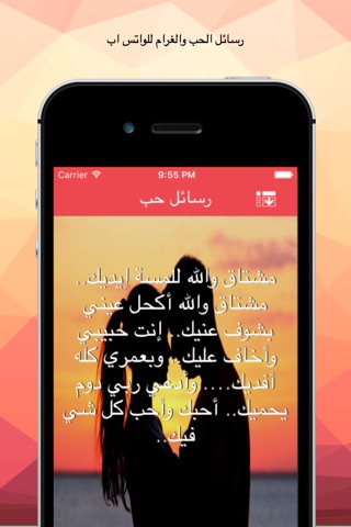 تطبيق رسائل حب ساخنة روعة يتميز بتصميم جميل و أنيق بالإضافة الى قاعدة بيانات كبيرة يتوفر على كمية هائلة من ميساجات الحب بالعربية او ميساحات الحب بالدارجة المغربية التي تناسب كل شخص تقريبا سواء أكان يبحث عن مسجات الحب وكلمات عتاب أو ميساجات الحب بالداريجة او رسائل الحب مغربية أو رسائل الحب و الغرام أو كلمات في الحب أو كلام عن الحب باسلوب خطابي جد معبر و مميز مما يجعله أفضل برنامج في مواضيع rasail رسائل حب رسائل حب ورومانسية مغربية sms love هو تصميمه المميزالذي يساعدك على العثور على رسائل حب بالدارجة المغربية بكل سهولة وارسالها في الحال سواءا عبر SMS أو واتساب او فايسبوك إلى الشخص الذي تحبه هناك الكثير من رسائل الحب والعشق رسائل الحب بالدارجة المغربية