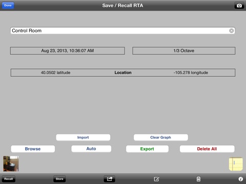 You can save and recall graphs, marked with the GPS location, date & time, and your comment, as well as store the image to your photo roll.