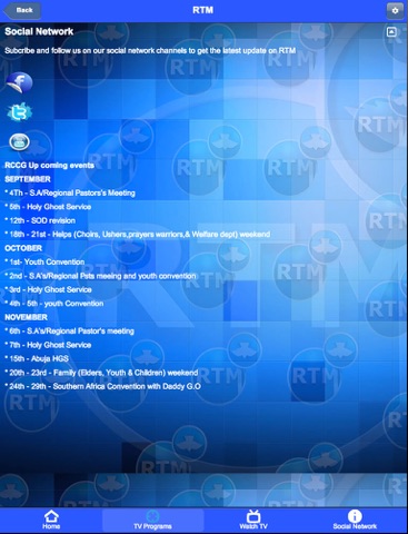 The RTM Mobile App is the electronic evangelical arm of the Redeemed Christian Church of God and on-demand mobile application developed to deliver the TV experience of the RTM TV station to you. Watch live streams from the station, watch the TV programs of your choice, listen to Daddy G.O’s Prayer for the day, get news & update about RTM & RCCG in general and lots of many more inspiring programmes.