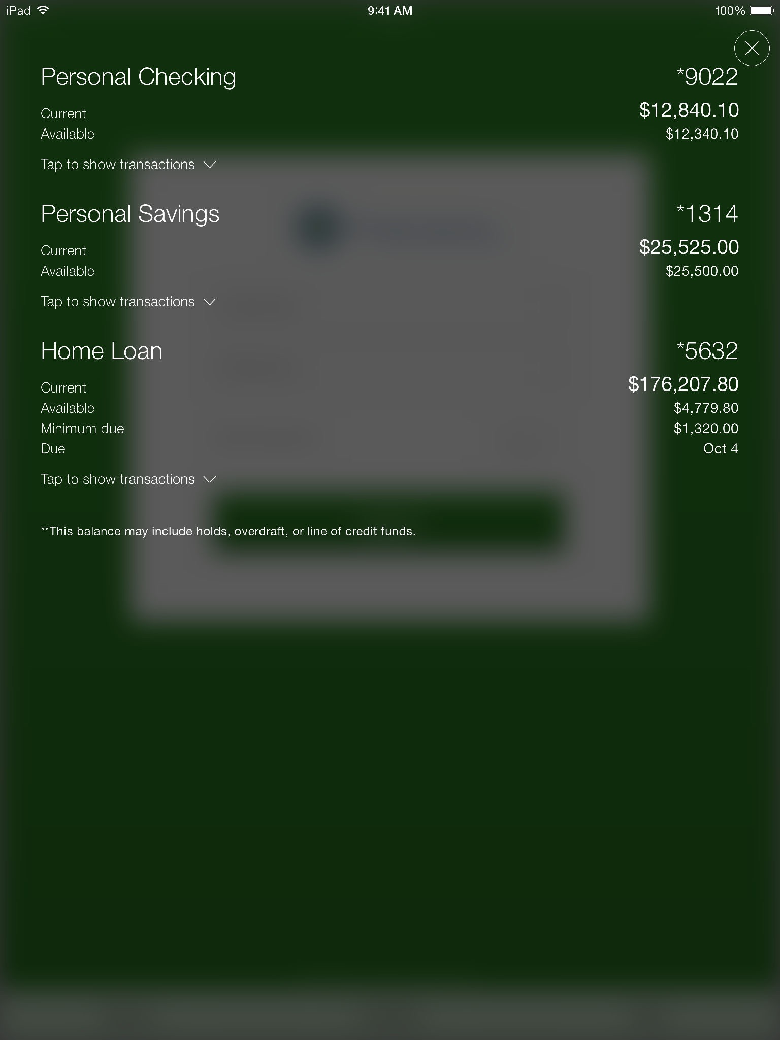 -View your account balances and transaction histories by date, amount or check number.
