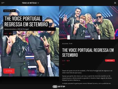 A App The Voice Portugal dá-te acesso a conteúdos exclusivos, criados especialmente para os fãs do The Voice. Joga, prevê e avalia as atuações durante a semana e vota nos teus talentos preferidos nas Galas. Lê notícias, assiste a vídeos, partilha com os teus amigos o que sabes e ganha Medalhas por seres o maior fã do programa da RTP. Tudo numa app!