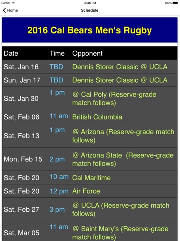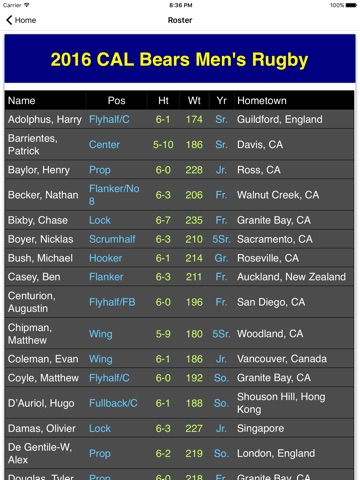Updated for 2018. Cal Rugby delivers the information you need to keep up with your favorite team. You can check out the latest news on your team along with the game schedule and roster of players. You can also use the app to purchase tickets, get directions to the arena and find all kinds of information on your team.