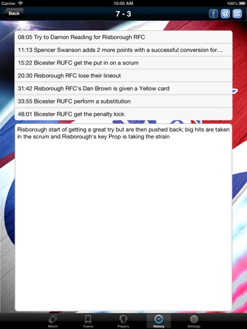 Quickly and easily keep track of the score, timing and all key events that happen during a rugby match with this free app that can be used for Rugby Union or Rugby League (Pro Only)!