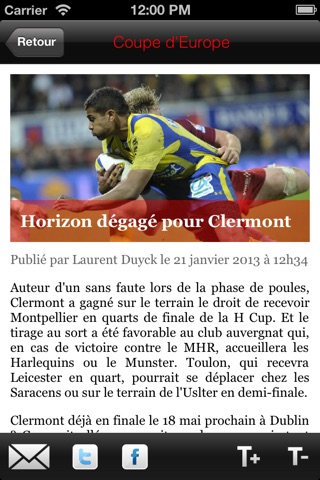 Suivez toute l’actualité Rugby en direct avec l’application Rugbynews.fr ! Top 14, Pro D2, Coupe d’Europe, Challenge européen, Super 15, VI Nations et la coupe du monde à suivre sur votre iPhone.