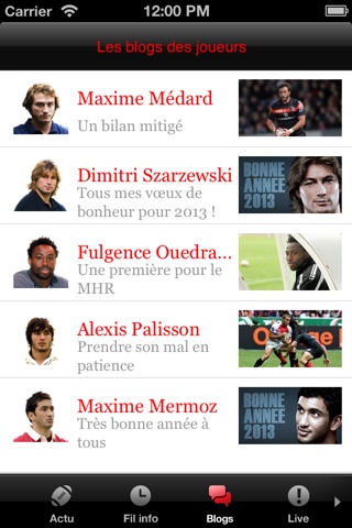 - Accédez aux blogs officiels des ambassadeurs de Rugbynews.fr : Maxime Mermoz, Dimitri Szarzewski, Fulgence Ouedraogo, Alexis Palisson et Maxime Médard.
