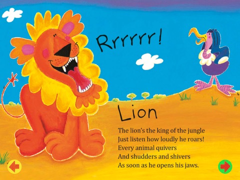 Take a trip through the jungle and meet all your favourite animals in this exciting app with animation, sound effects and music. Choose to read the rollicking jungle romp yourself, or hear it read aloud. Guaranteed to provide hours of entertainment! Little ones will love joining in with the animal sound effects and finding the touch-activated animation on each screen. This app comes complete with a simple puzzle game that reinforces learning.