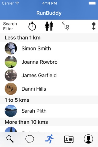 Forget about having your time wasted. With RunBuddy’s search functionality enter your usual running distance and pace to filter nearby users. Know that other runners are at your level before even saying hi. You can even filter by gender if you only want to run with men or women. We know that every runner is different and so have developed a powerful search to help you find a running partner that is right for you.