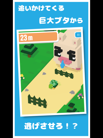 This is "Run & Jump game" to get the cute amimals run away, and avoid them from being knocked down by a scary pig.