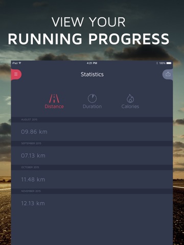 •Statistics-shows the distance and duration of running, lost calories;