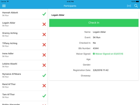 • Waiver Check-In – make sure your participants have signed their waiver and check when they sign it on race day.