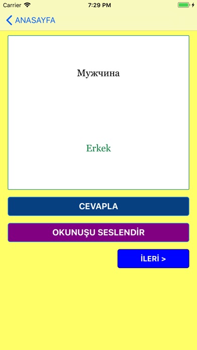 Rusça ezber kartlarda birebir canlı ses kullanarak telaffuzlara yer verilmiştir.