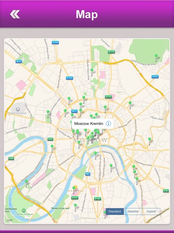 ◆ Map : Locates the Russia and the user location on map. Once the user opens the Map, it points us the all Hotels and Attractions of Russia. Has the call option and can check the address of the Hotel or Attraction. GPS facility is enabled to show the directions and route map.